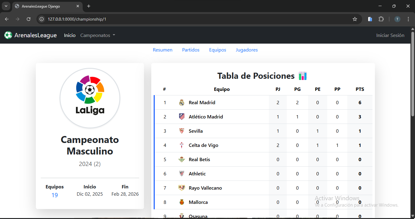 Una plataforma web para gestionar ligas deportivas.