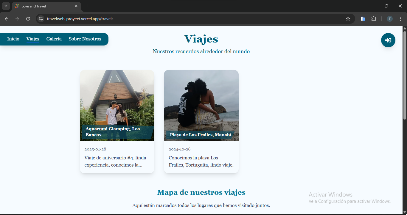 Una plataforma web para compartir viajes y experiencias junto a mi pareja.